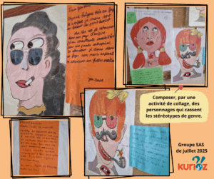 Pour encore plus d’impact, le travail réalisé passe parfois les murs de la prison pour aller s’exposer dans les bureaux du SPIP, de KuriOz ou auprès du grand public. Ce fut le cas cette année par exemple, lors du festival Les Affranchi·Es, durant lequel nous avons exposé les créations de « portraits qui cassent les codes et les stéréotypes de genre ».